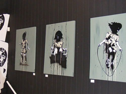 You'll have to make do with this image of the "goodies" that Eelus handed out to the early birds. including this signed skull print and home made postcards made using a miniature screen printer from Japan!! great attention to detail, best work I've seen from eelus so far, expect more to come...