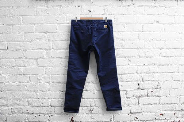 The Sid Pant is back again, this time in a lighter blue, a slim fit pant with a low waist and tapered leg. (below)